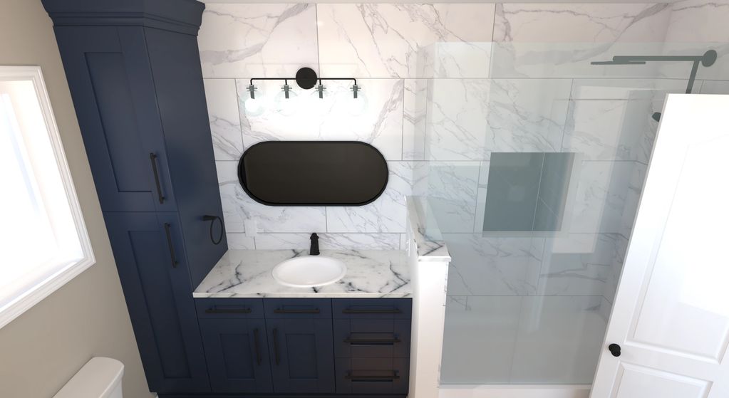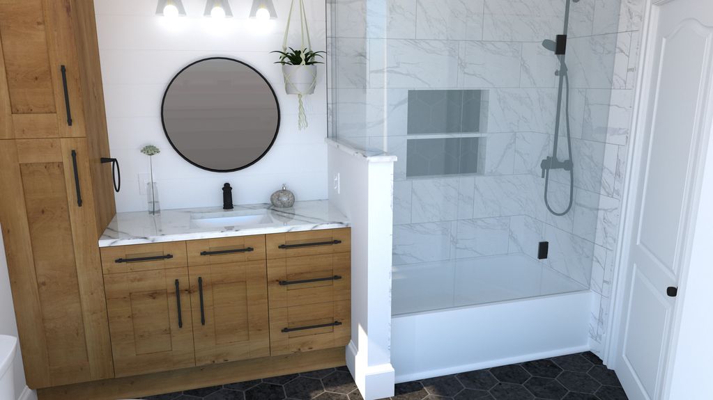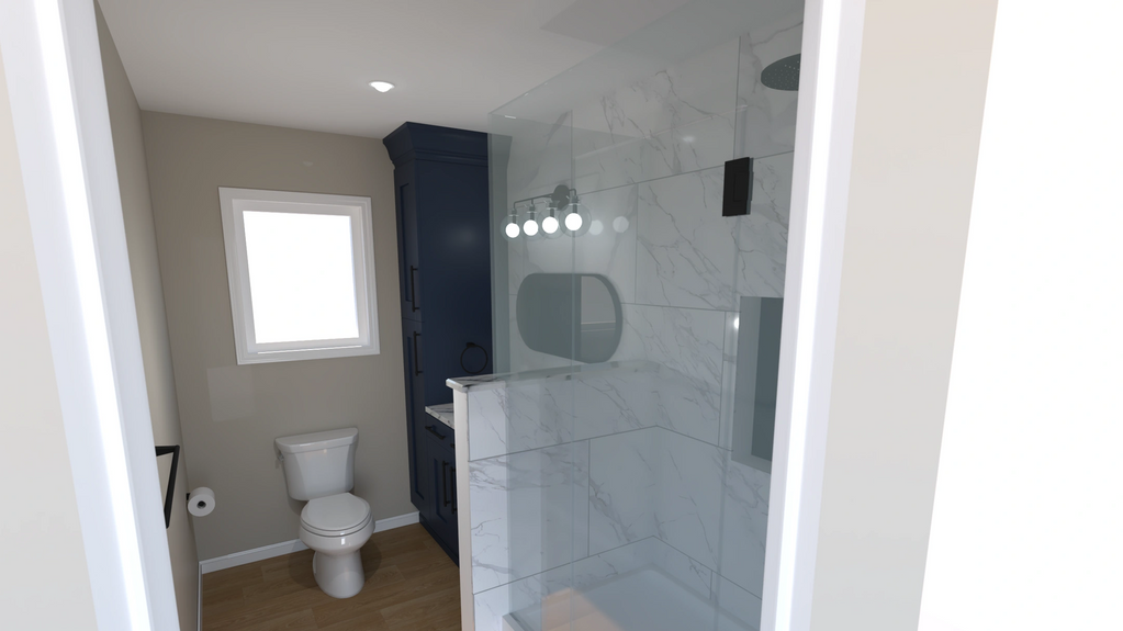 You will see the same bathroom but in two variations. We did this to display the power of design in your space. The layout is the same, but the rendered components make all the difference. These images should help you visualize a completed project before any demo begins!